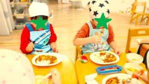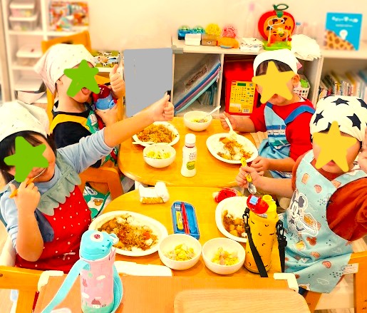 自分で盛り付けて、みんなでいただきま~す🍛💛
