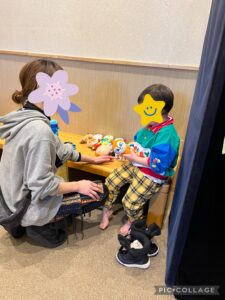 初めての場所でも安心して過ごせるよう、お気に入りのアンパンマンのぬいぐるみ達も連れていきましたよ♥️
