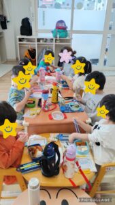 お昼ごはんは、みんな一緒に並んで美味しく食べました🍱