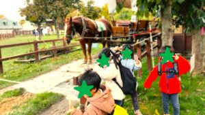 間近で見る大きな馬に興奮気味な子どもたち(笑)