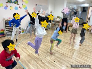 音楽に合わせて思いっきり体を動かして楽しんでいます🎵