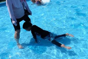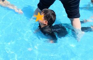 「みて~ワニサンだよ~!」と両手で上手に水をかいて器用に泳ぐ姿や….