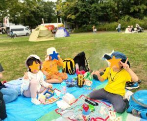 広い芝生でシートを敷き、楽しみにしていたお弁当を広げます♡ピクニック気分でウキウキな表情で食べていましたよ☆