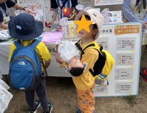 健康測定コーナーでジャンプ測定にチャレンジしエアーパンダを参加賞でもらって大事そうに持って歩いていました!