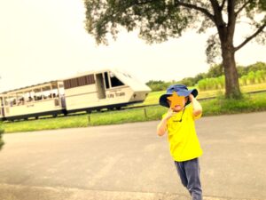 アスレチックを登った頂上から何かを見つけました!「あ!!電車走ってる!!」