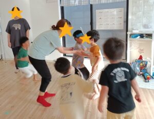 簡単なルールの理解する力、役になり切る表現力や想像力、追いかけっこでは運動能力を育み、お友達との触れ合いを通しコミュニケーション能力も促していきます♬