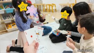 トランプ遊びでは、神経衰弱やババ抜き、七並べやぶたのしっぽなど、みんなでルールを確認しながら遊んでいます♠️