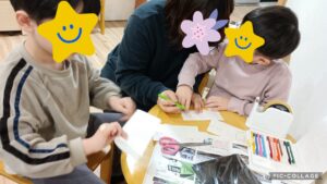 最近折り紙がブームのお友達もいます📚 図鑑で電車を見ながら、折り紙を折って・・窓やドアを描いて・・と、集中して作っています🚋