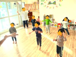 今回は、週2回行っているリズムに合わせて体を動かす運動療育の1つ、ダンス教室をご紹介します♬